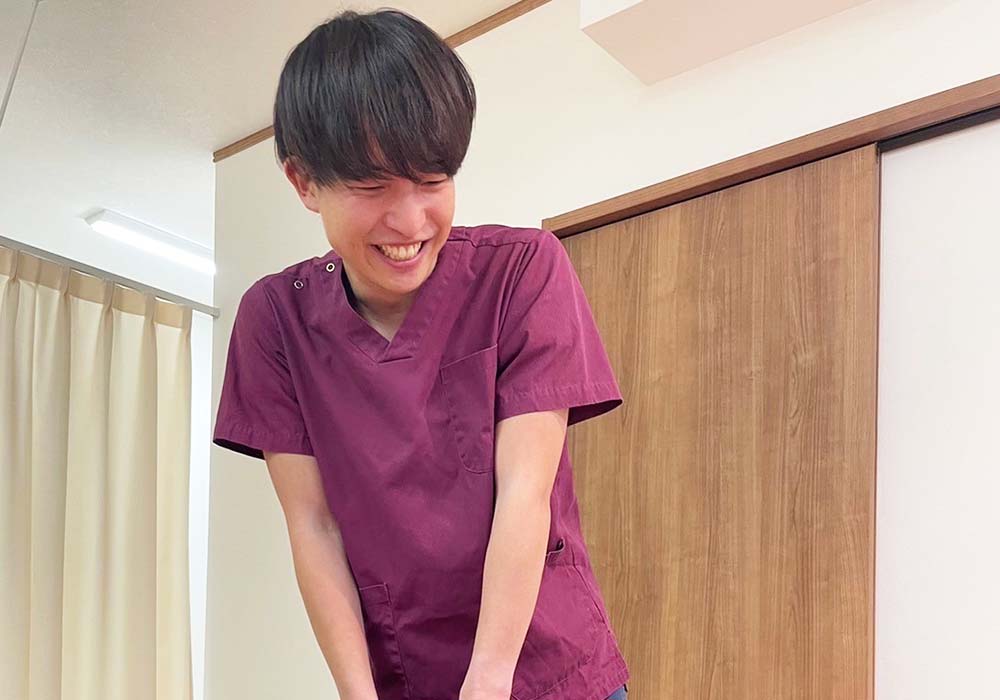 私は学生時代にスポーツをやっていて体を故障し辛く悩んでいた際、スポーツトレーナーの先生に治療していただいたことがきっかけでこの道を目指しました。